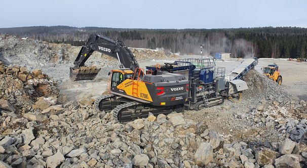 I Skanskas bergtäkt i Haparanda, Vuono, har vi fått uppdraget att krossa material som ska förse upprustningen av E4:an mellan Salmis och Haparanda.