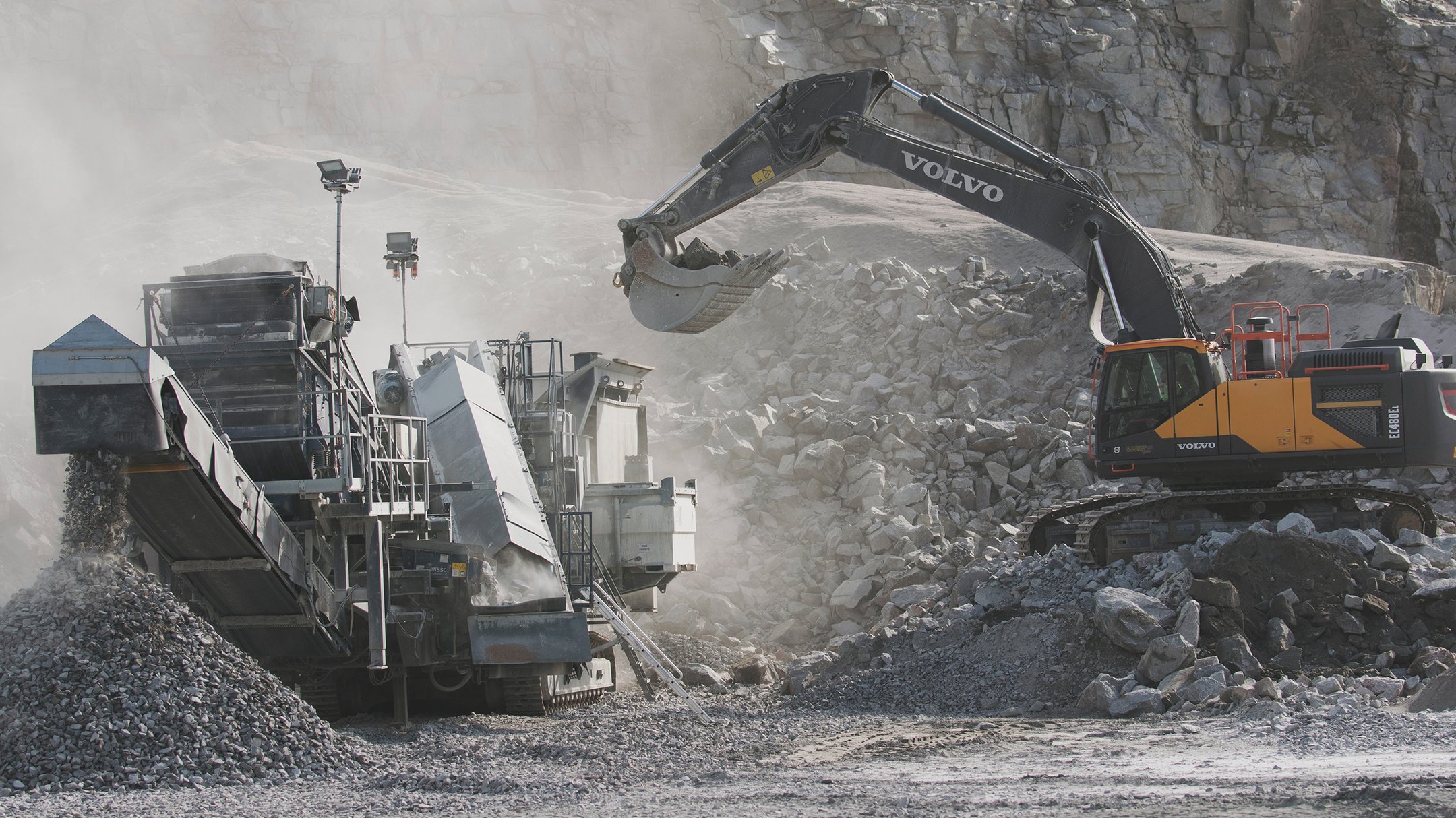 Vi har idag tre mobila krossanläggningar i bergtäkter som vi arbetar med, från Umeå i söder till Kiruna i Norr.